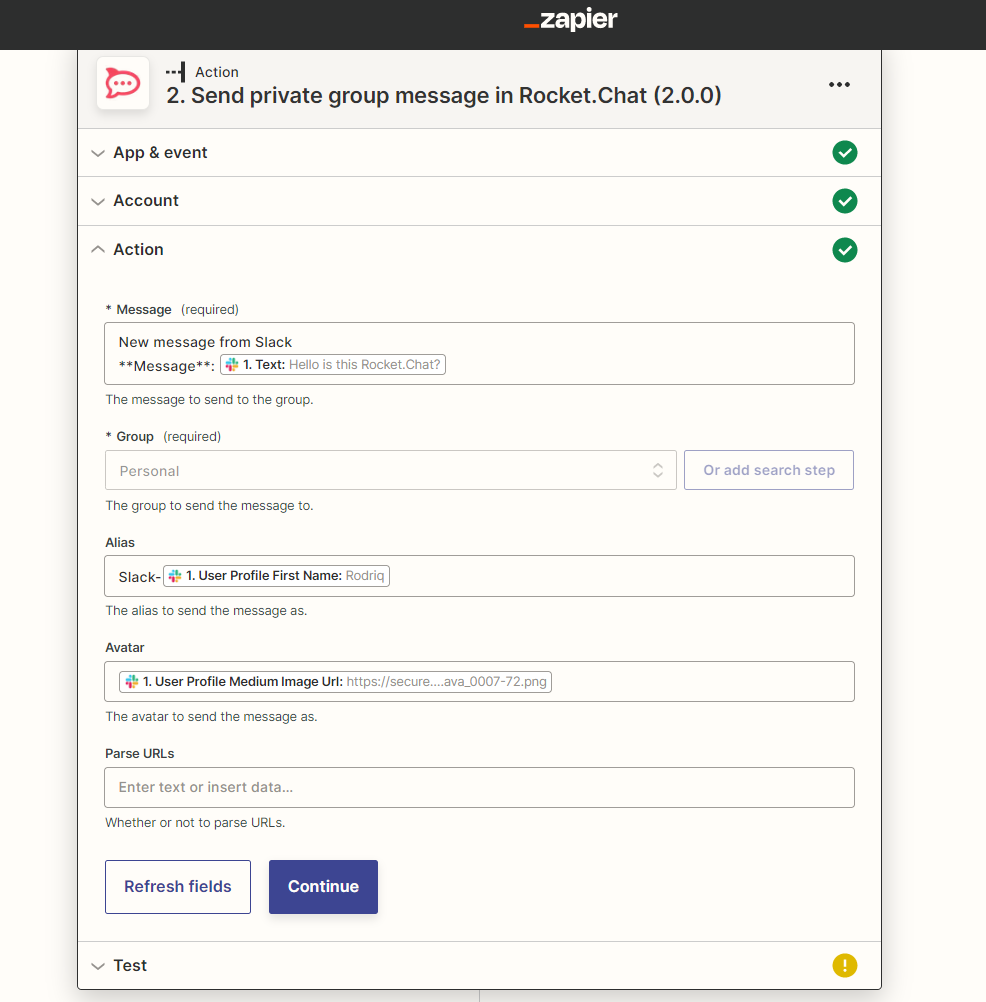 Zapier forward Slack Messages to Rocket.Chat Channel