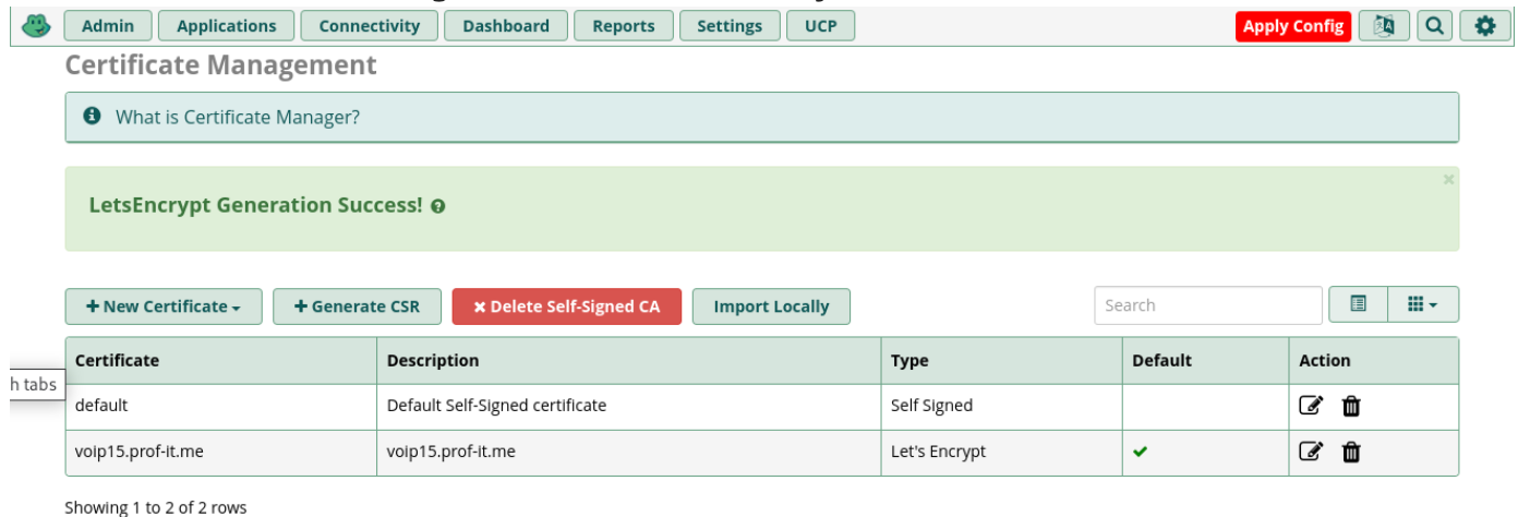 Test it. Congratulations! you have an HTTPS-valid SSL FreePBX server up and running.