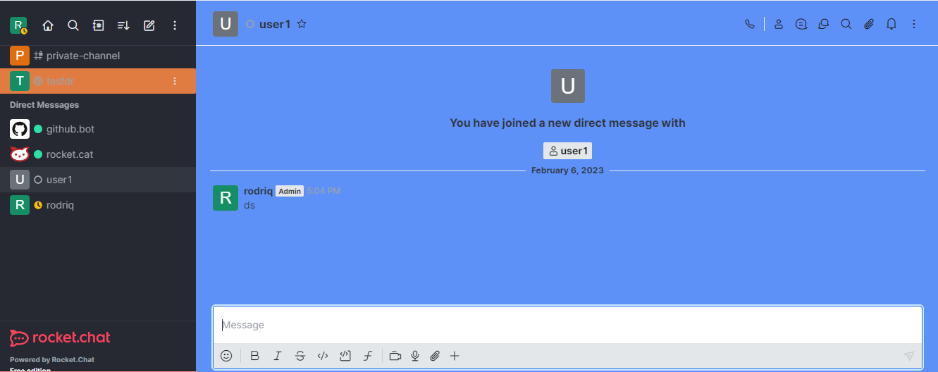 <figure><img src="https://content.gitbook.com/content/bt8UjMwvSvhZqV13FzmJ/blobs/TpAoDM8HqLcXbOGLvXW6/image%20(355).png" alt=""><figcaption><p>Customized Rocket.Chat UI</p></figcaption></figure>